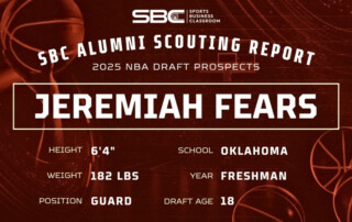 [The following scouting report is part of a series on potential 2025 draft prospects from Sports Business Classroom alumni.] Jeremiah Fears Frame: 6’4″, 182 lbs Position: Guard Team: Oklahoma Sooners 2025 Draft Age: 18 Stats viawww.sports-reference.com Offense Fears pops off the screen with his agility and quickness when getting downhill to the basket. He [Read More]