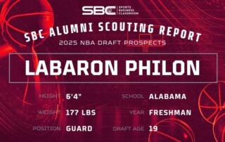 [The following scouting report is part of a series on potential 2025 draft prospects from Sports Business Classroom alumni.] Labaron Philon Frame: 6’4″, 180 lbs Position: Guard Team: Alabama Crimson Tide 2025 Draft Age: 19 Stats via www.sports-reference.com Offense Philon’s ability to knock down push shots or floaters was his scoring weapon at Alabama. [Read More]